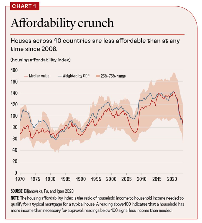 Secondo questa ricostruzione, il momento saliente è stato il dopo pandemia, che insieme all’inflazione, a sua volte causa delle pesanti restrizioni monetarie varate dalle banche centrali ha innescato “la peggiore crisi di accessibilità economica degli alloggi al mondo in più di un decennio”. Un altro ingrediente nella diffusa crisi da risentimento che sta scuotendo le fondamenta delle società ad economia più avanzata.