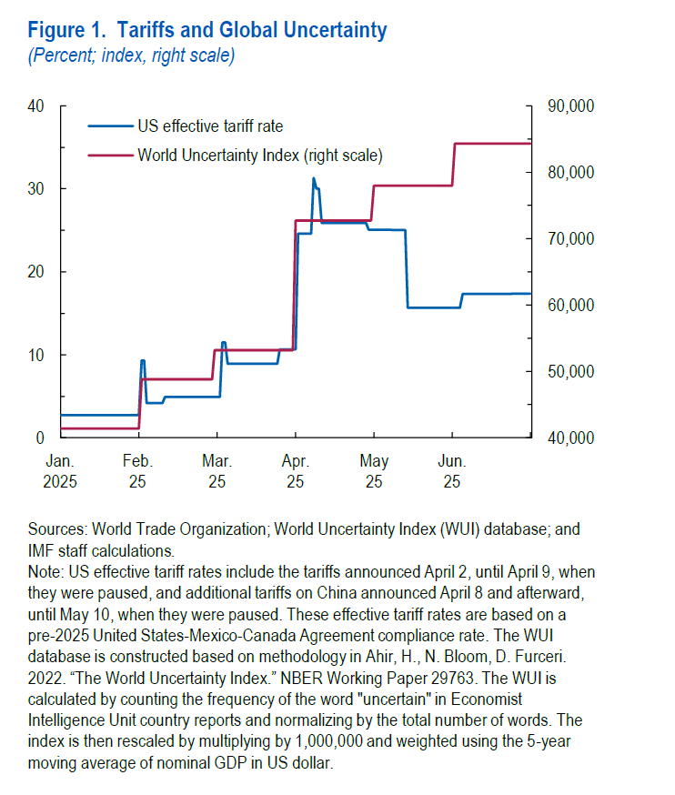 E’ interessante osservarlo oggi, mentre il presidente Usa annuncia via social al suo popolo che “miliardi affluiranno negli Usa grazie ai dazi”, omettendo di ricordare che intanto questi miliardi li pagheranno gli importatori americani, perché ci dice un’altra cosa. Ossia che l’incertezza cresce. E questo malgrado le tariffe Usa tendano ad essere fissate a un livello assai più basso di quello minacciato dall’amministrazione Usa solo pochi mesi fa.