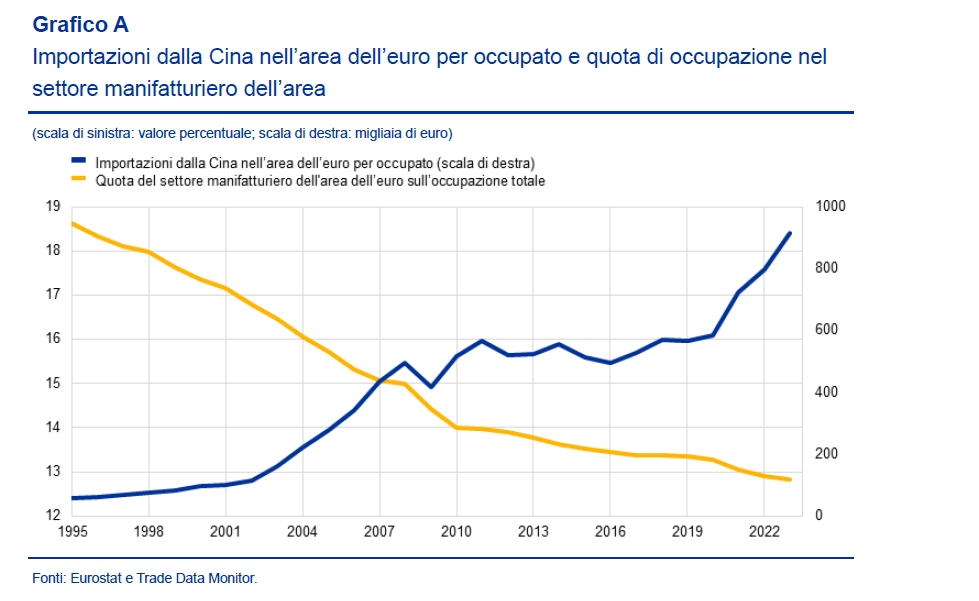 I nostalgici della manifattura osserveranno con sconcerto quanto e come l’import cinese abbia sostituito le nostre produzioni, e finiranno magari col dare ragione a Trump. Essere grandi produttori nella manifattura ha evidenti vantaggi, ma anche a Pechino sanno che il futuro è altrove. Non a caso laggiù stanno correndo forsennatamente per sviluppare i servizi avanzati, mentre noi europei ancora rimpiangiamo la Cinquecento e la Mercedes. Il problema forse non è sognare di tornare a fare i cinesi, ma provare a superarli, una volta tanto.