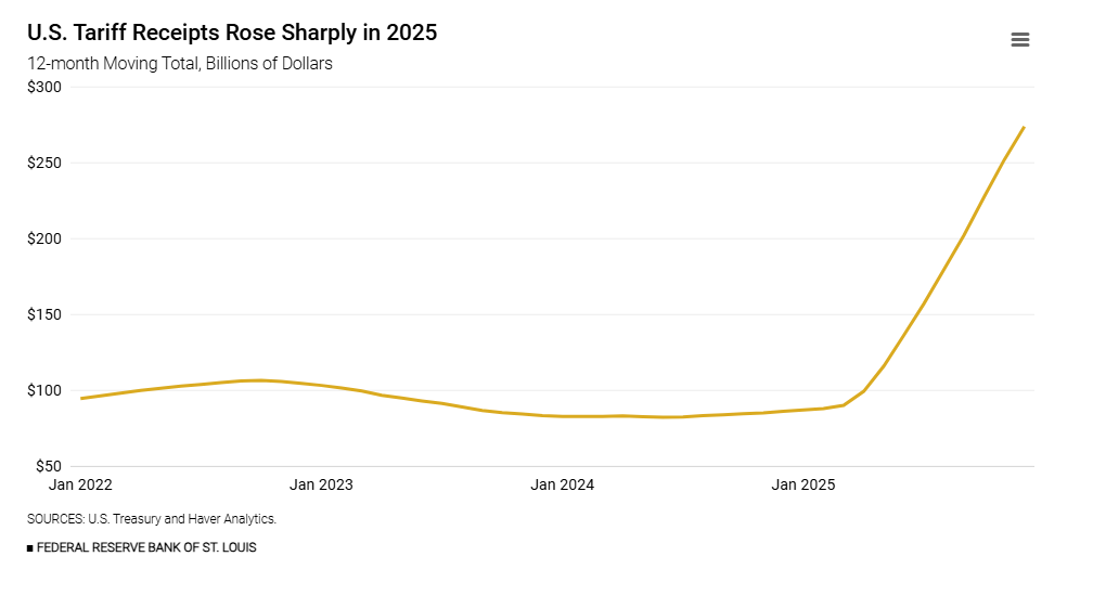 Questa riduzione non deriva da un’unica causa, ma da un insieme di dinamiche fiscali articolate. La fonte più rilevante dell’aumento delle entrate federali è rappresentata dai dazi introdotti nel 2025. Prima gli Stati Uniti raccoglievano circa 80 miliardi di dollari in entrate doganali su base annua. A dicembre 2025 il totale ha raggiunto 270 miliardi. In pratica sono più che triplicate.