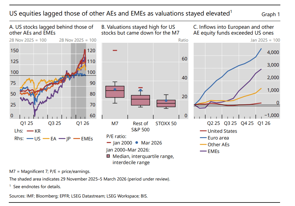 I dati raccolti dal Bis nella sua ultima Quarterly review lasciano pochi dubbi. La correzione c’è stata e insieme si è verificata una mini fuga di capitali dalle borse Usa verso nuovi lidi, ossia economie avanzate come quella europea, dove magari le quotazioni, che non sono cresciute come quelle Usa, sono ancora abbordabili.