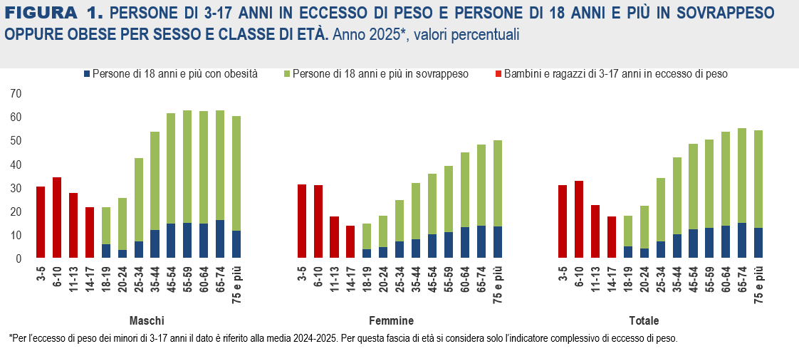 Gli ultimi dati Istat sui fattori di rischio per la salute degli italiani ci comunicano un dato che dovrebbe farci interrogare sull’efficacia effettiva di svariati decenni di politiche di welfare sulla nostra popolazione. Oltre la metà degli italiani, infatti, dichiara di essere afflitta da una patologia cronica. Fra queste patologie viene ricompresa anche l’obesità.