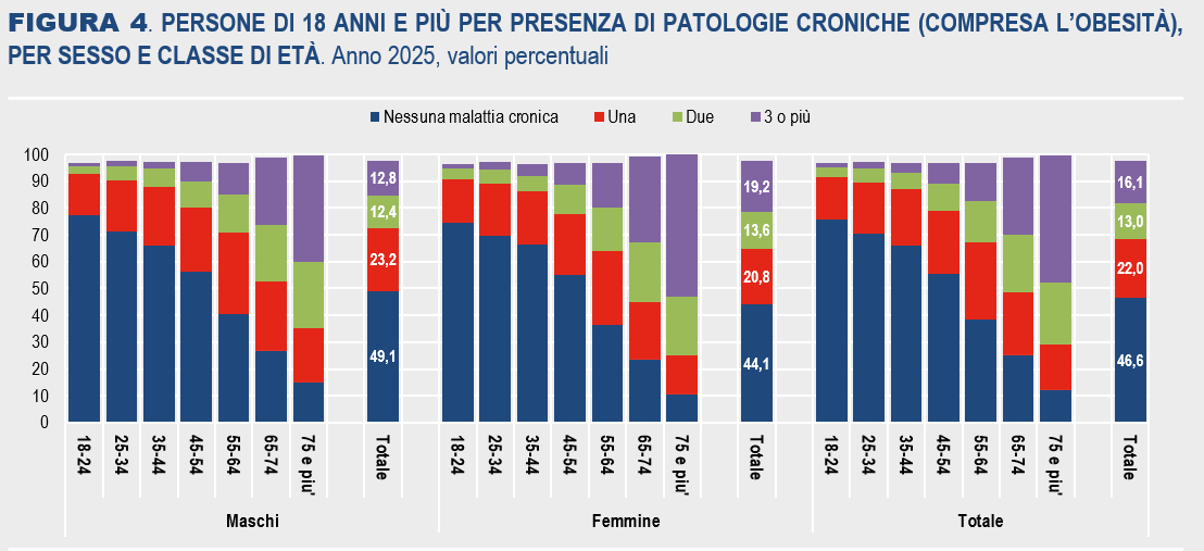 Oltre la metà degli italiani ha almeno una patologia cronica