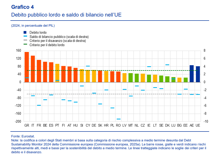 Così l’affermazione che “i paesi dell’UE devono aumentare significativamente la spesa per investimenti strategici per muoversi efficacemente in un mondo sempre più competitivo e digitalizzato, affrontando al tempo stesso i crescenti rischi geopolitici e climatici”, che il bollettino evidenza, rimane semplicemente un’esortazione, ma priva di senso. Che succede se questi investimenti non diventano produttivi? E chi decide se lo sono o lo diventeranno?