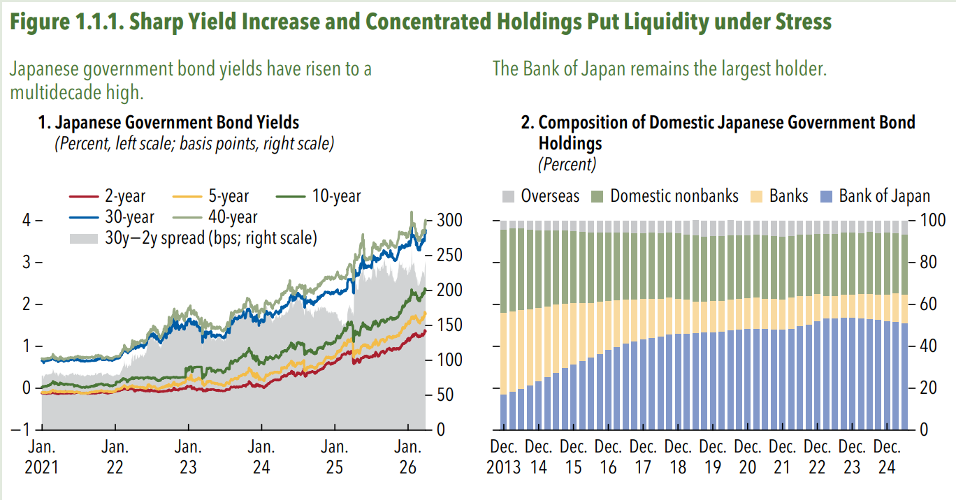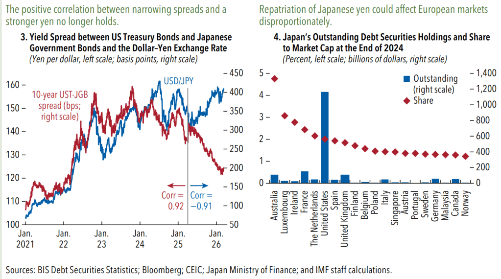 Come ultimo dato è utile ricordare che nel 2025 i non residenti hanno acquistato 13,3 trilioni di bond giapponesi a lungo termine, l’ammontare più elevato dal 2005. I mercati sono interconnessi e vivono letteralmente l’uno dentro l’altro. Quindi soffrono anche insieme, quando cambia il clima.