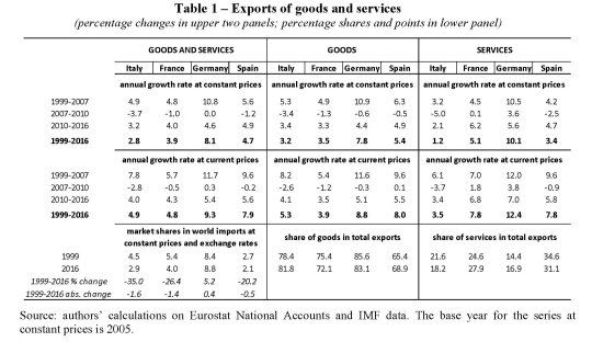 Andamento percentuale export italiano dal 1999