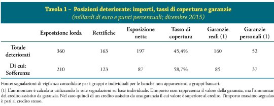 02/05/2016 Riepilogo crediti deteriorati banche italiane Fonte: Bankitalia quanto valgono i crediti deteriorati aprile 2016 Condividi: Fai clic per condividere su X (Si apre in una nuova finestra) X Fai clic per condividere su Facebook (Si apre in una nuova finestra) Facebook Fai clic per condividere su WhatsApp (Si apre in una nuova finestra) WhatsApp Fai clic qui per condividere su LinkedIn (Si apre in una nuova finestra) LinkedIn Fai clic per condividere su Telegram (Si apre in una nuova finestra) Telegram Fai clic per inviare un link a un amico via e-mail (Si apre in una nuova finestra) E-mail Fai clic qui per stampare (Si apre in una nuova finestra) Stampa Altro Fai clic qui per condividere su Pocket (Si apre in una nuova finestra) Pocket Fai clic qui per condividere su Reddit (Si apre in una nuova finestra) Reddit Fai clic qui per condividere su Pinterest (Si apre in una nuova finestra) Pinterest Fai clic qui per condividere su Tumblr (Si apre in una nuova finestra) Tumblr Mi piace Caricamento...
