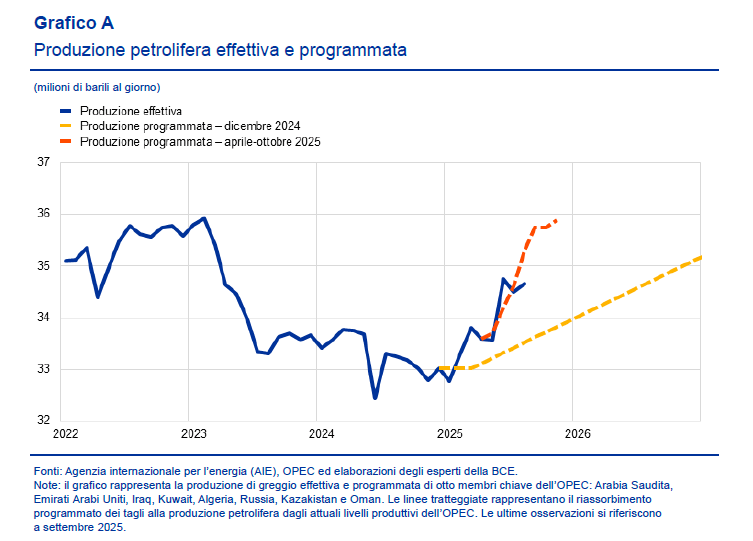 Secondo gli analisti della Bce molto di queste decisioni ruota attorno all’Arabia Saudita, che di solito interpreta un ruolo di stabilizzatrice dei prezzi del petrolio finché non decide di fare il contrario. Oggi ad esempio la quota dell’offerta globale rappresentata dal paese è ancora inferiore rispetto a quella del 2014, mentre i produttori non Opec hanno continuato ad aumentare la produzione.