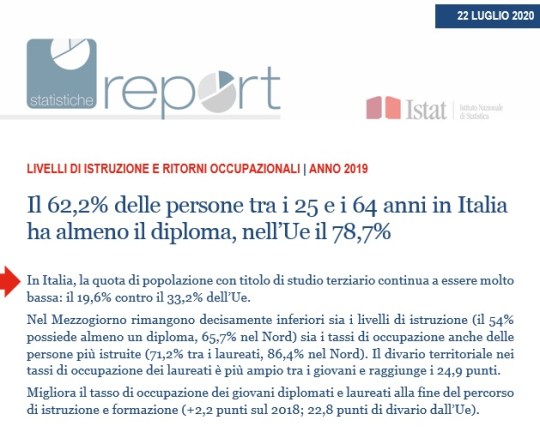Settant’anni di scuola pubblica dopo stiamo così. Un successo straordinario. Al quale si aggiunge l’avere il numero più elevato di NEET, ossia di giovani che non studiano e neanche lavorano. Cittadini perfetti insomma.