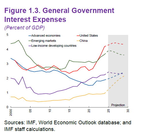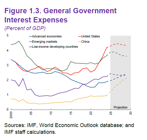 Sono in buona compagnia. Le economie avanzate sembra se la passino meglio, ma solo perché hanno imparato a dissimulare i loro stress fiscali, che però non li risparmiano affatto e tantomeno lo faranno in futuro. Con una popolazione che invecchia, abituata per giunta da decenni ad avere pensioni e sanità di un certo livello, lo stress fiscale dei governi occidentali molto facilmente degenererà in stress politico. Lo stiamo già vedendo. E in questo caso a far la differenza sarà anche un’altra componente mai troppo messa in evidenza: la spesa per gli interessi sui debiti. L’Occidente sentirà sempre più il morso del debito accumulato negli anni, anche perché è da anni che lo accumula e continua a farne.