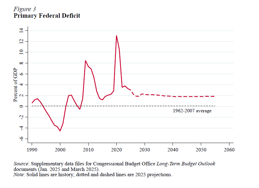Aldilà di ciò che si dice, insomma, abita la fredda aritmetica della contabilità, con la sue astruse formule per stimare la sostenibilità dei debiti. Come regola generale si dice che se un’economia cresce più del suo tasso di interesse reale che paga sui debiti, si evita l’effetto snowball che noi italiani conosciamo bene, e il debito si regge sulle sue gambe. Ma per gli Usa ormai da un pezzo non è più così.