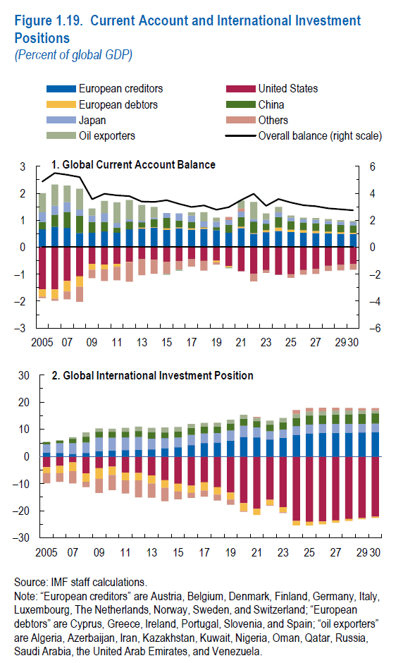 Il Fmi, nel suo ultimo WEO stima che gli squilibri globali tenderanno a ridursi da qui al 2030, anche a causa della contrazione degli squilibri statunitensi. Ma certo è molto difficile fare previsioni quando ci si trova di fronte a comportamenti alquanto erratici da parte dei soggetti che prendono le decisioni. Per questo il Fondo sottolinea che l’outlook comunque punta al ribasso, sia nel breve che nel medio termine.