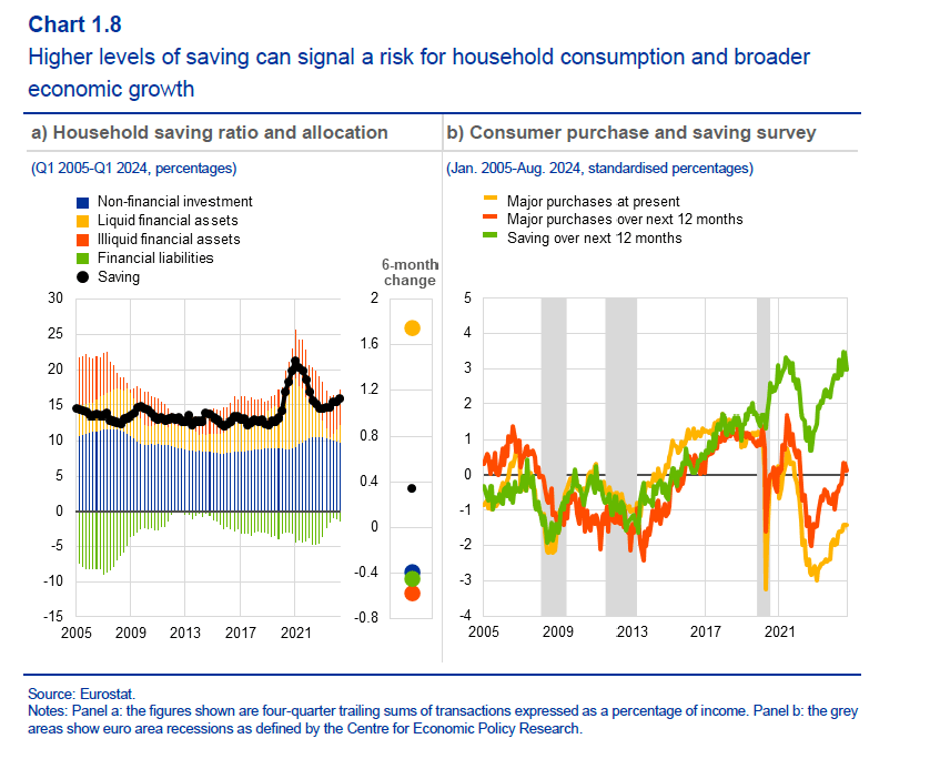 A fronte di questo quadro, che si confronta con uno scenario futuro a tinte fosche – non bastasse la prevedibile politica commerciale Usa, metteteci dentro anche la crisi dell’automotive – la Bce osserva che le famiglie europee hanno aumentato i propri tassi di risparmio.