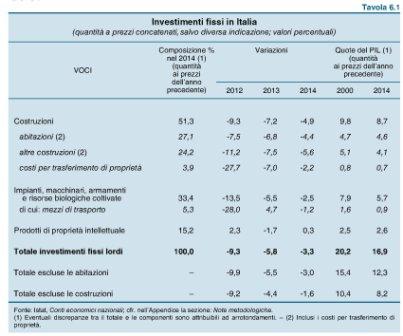 28/05/2015 Investimenti fissi lordi in Italia: il crollo delle costruzioni Fonte: Relazione annuale Bankitalia 2015 Condividi: Condividi su X (Si apre in una nuova finestra) X Condividi su Facebook (Si apre in una nuova finestra) Facebook Condividi su WhatsApp (Si apre in una nuova finestra) WhatsApp Condividi su LinkedIn (Si apre in una nuova finestra) LinkedIn Condividi su Telegram (Si apre in una nuova finestra) Telegram Invia un link a un amico via e-mail (Si apre in una nuova finestra) E-mail Stampa (Si apre in una nuova finestra) Stampa Altro Condividi su Pocket (Si apre in una nuova finestra) Pocket Condividi su Reddit (Si apre in una nuova finestra) Reddit Condividi su Pinterest (Si apre in una nuova finestra) Pinterest Condividi su Tumblr (Si apre in una nuova finestra) Tumblr Mi piace Caricamento...