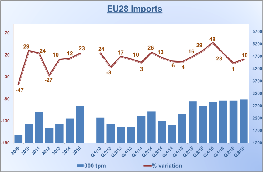 La seconda notizia è che nel terzo trimestre l’importazione di acciaio è aumentata del 10% rispetto allo stesso trimestre del 2015. Ciò ha provocato una contrazione delle vendita domestiche del 2%, sempre su base annua, e le rilevazioni più recenti parlano del calo di un ulteriore 5%. Capite bene perché il direttore generale dell’associazione Axel Eggert, notando la crescita dell’import, abbia lanciato un allarme: “Nel secondo semestre – ha sottolineato – l’import ha soddisfatto il 25% del mercato europeo”.