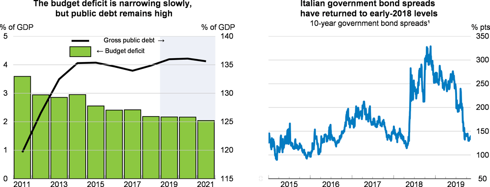 l’incidenza della spesa per interessi sul prodotto è diminuita di un punto percentuale,