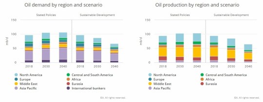 Se prendiamo come riferimento lo scenario stated policy – quindi allo stato attuale delle nostre conoscenze – osserviamo che la domanda di petrolio supererà il 100 milioni di barili al giorno nel prossimo decennio per rimanere sostanzialmente stabile in quello successivo. Ma ciò che cambierà sarà la composizione interna di questa domanda. A un calo della domanda dei paesi avanzati, Usa e Europa in testa, farà da contraltare l’aumento dei consumi dei paesi emergenti, con quelli asiatici a guidare la classifica. In particolare questi ultimi vedranno la loro domanda crescere dai 32 milioni di barili/giorno attuali ai 39 milioni del 2040. E anche l’Africa, quasi raddoppierà – dai 4 milioni ai 7 del 2040, la sua domanda.
