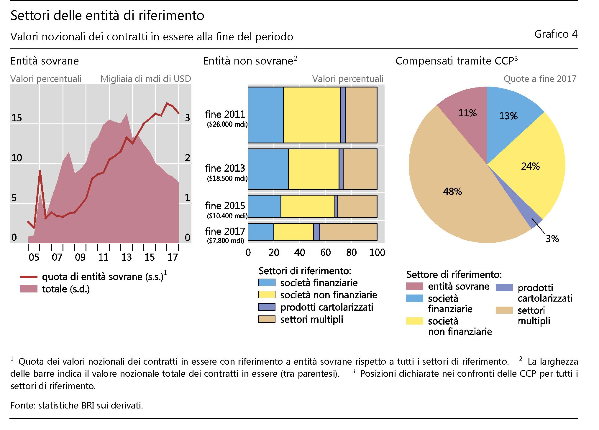 La quota di Cds su titoli sovrani è cresciuta anche dopo, arrivando al 16% del mercato a fine 2017. Tuttavia, malgrado il notevole aumento, il grosso dei Cds si indirizza sulle obbligazioni di altri soggetti.