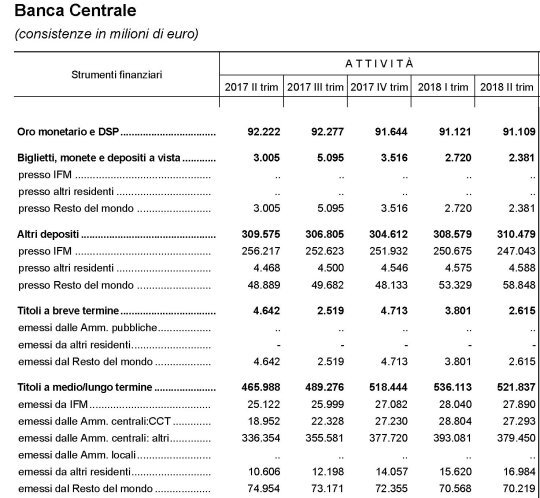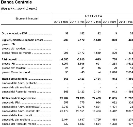 Quindi Bankitalia si è trovata, a fine secondo trimestre 2018, con consistenze a 379 miliardi, pari a 14 miliardi in meno rispetto al trimestre precedente, e malgrado gli oltre 9 miliardi di afflussi netti arrivati nel corso del mese. In sostanza, se lo spread fosse rimasto fermo nel corso del trimestre Bankitalia avrebbe dovuto avere poco più di 400 miliardi di consistenze, visto che la banca centrale continua a comprare titoli pubblici, invece dei 379 registrati. Alle banche commerciali è accaduto qualcosa di simile.