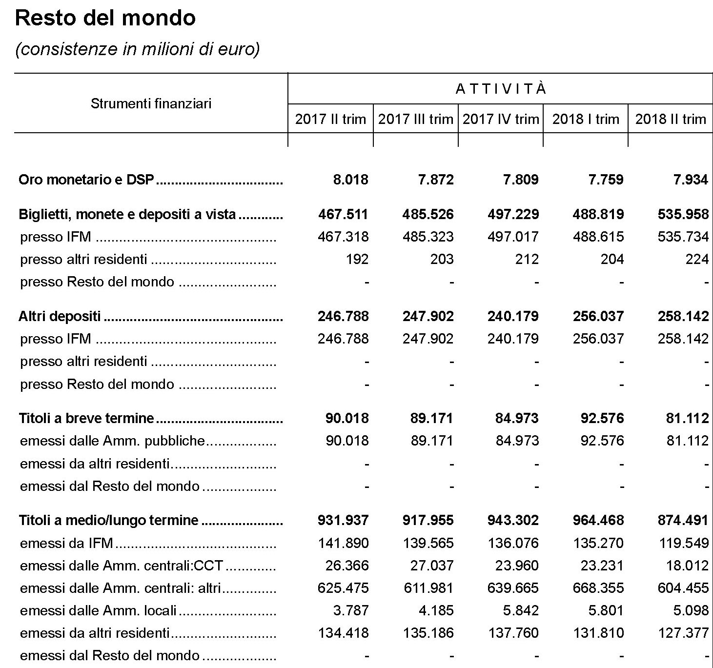 Il primo settore che vale la pena osservare è l’estero. La tabella ci consente di osservare le consistenze di titoli a medio lungo termine emessi dal Tesoro in mano agli investitori esteri.