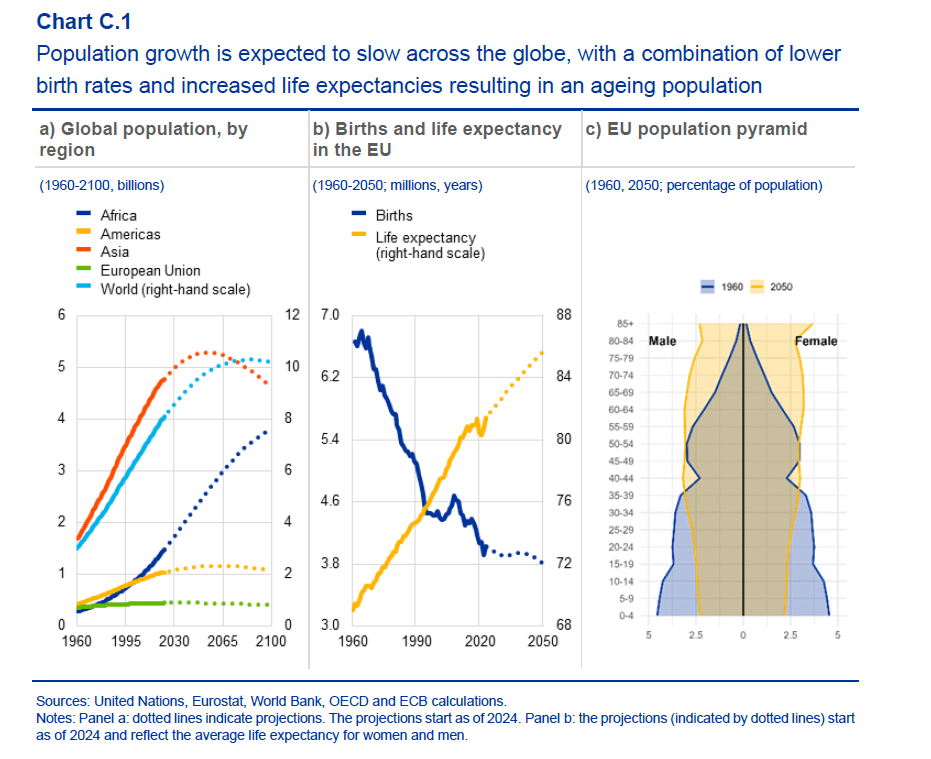 Nel 2100, secondo le previsioni Onu riportate nell’ultima Financial stability review della Bce, un po’ meno del 40% degli abitati del mondo, che dovrebbero essere poco più di 10 miliardi saranno africani. L’Asia ne esprimerà qualcosa in più. L’UE meno del 5%. E questa piccola quota di popolazione sarà molto anziana, e quindi fragile. Non c’è da stupirsi che questa fragilità si trasmetterà anche ai sistemi finanziari. Una società che invecchia, fa invecchiare ogni cosa.