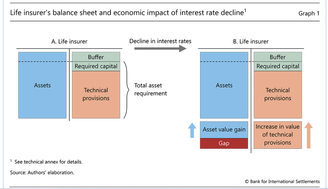 Queste ultime infatti hanno dovuto penare molto per ridurre le riserve tecniche, ossia le esposizioni future, e risparmiare sul capitale proprio. Da ciò è derivato il proliferare di polizze unit-linked che, spiega la Bis, “spostano il rischio di investimento sui titolari di polizze e riducono le riserve tecniche, generando al contempo un reddito basato sulle commissioni, facendo anche ricorso alle riassicurazioni, ossia liberarsi delle polizze più onerose in termini di intensità di capitale cedendole ad altri assicuratori.