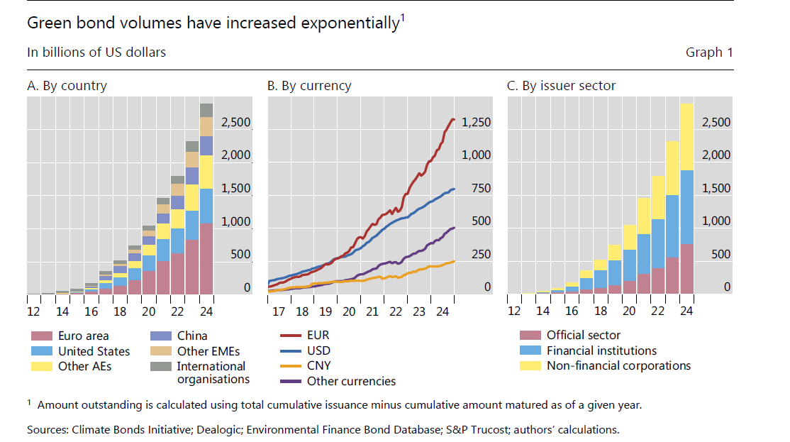 In poco più di una decina d’anni, osserva la Bis nella sua ultima Quarterly review, le emissioni di green bond, ossia di debito collegato a progetti che in qualche modo favoriscono la sostenibilità ambientale, è passata da zero a oltre 2,5 trilioni di dollari, che non è molto, rispetto alla montagna di obbligazioni che circola nel mondo, ma non è neanche poco.