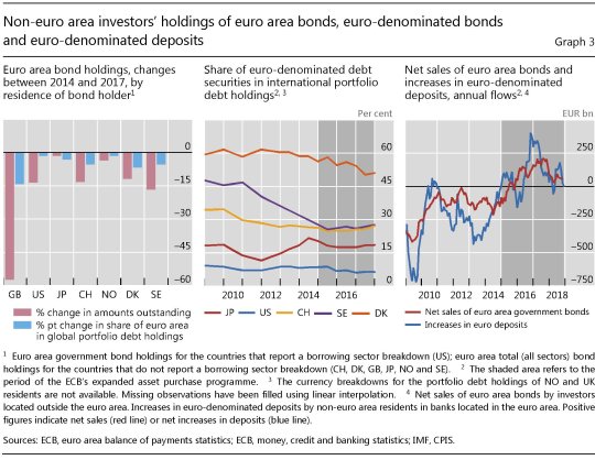 Il grafico sopra riepiloga gli andamenti finora discussi. In particolare si osserva che “lo spostamento verso i titoli di debito internazionali è stato più pronunciato nelle economie avanzate”. Ciò significa che i prestiti bancari verso i gruppi di debitori di queste economie sono diminuiti. In particolare “in maniera più accentuata dopo la crisi del debito sovrano dell’area dell’euro”. Le banche europee, profondamente scottate dalla crisi, hanno ridotto parecchio le esposizioni creditizie internazionali, comprese quelle in dollari nei confronti del residenti Usa. Al contrario, “i prestiti bancari transfrontalieri denominati in euro e i titoli di debito dei prenditori dell’area dell’euro sono rimasti entrambi pressoché stabili e non hanno inciso in modo significativo sulle dinamiche complessive dei valori aggregati corrispondenti per le economie avanzate”.