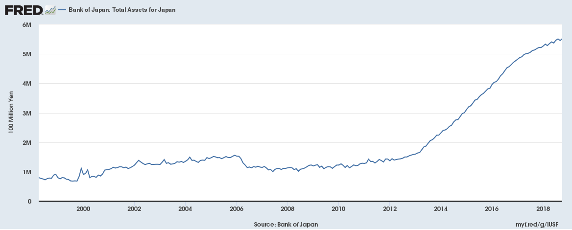 Di fronte alla BoJ, la Fed e la BoE sono modeste dilettanti in fondo. Le banche anglosassoni solo nell’ultimo quinquennio hanno dovuto alzare un po’ l’asticella. La banca centrale giapponese, al contrario, lo fa da un ventennio, e di recente ha anche creato un neologismo: il quantitative&qualitative easing, laddove le banche americane e inglesi ancora si incaponiscono col quantitative easing “semplice”.