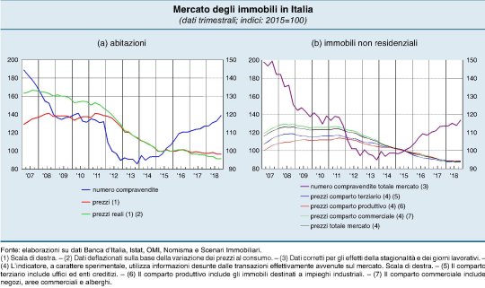 Il calo dei prezzi, che non accenna a terminare malgrado la ripresa in gran parte dell’eurozona, ha infatti notevolmente diminuito il valore del patrimonio abitativo delle famiglie che dal picco del 2011 ha perduto (a valori correnti) circa 400 miliardi.