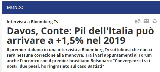 Questa cosa della crescita dell’1,5% detta dal nostro amato Pinocchio, che per un giorno almeno ha surclassato il Gatto e la Volpe suoi mentori (meglio conosciuti come Vicepremier Uno e Due a vostra scelta), che a molti era sembrata un’esagerazione dovuta alle altitudini svizzere, finalmente ha trovato la sua spiegazione nelle parole del nostro mentor of the mentors. L’Oltre-Mentor.