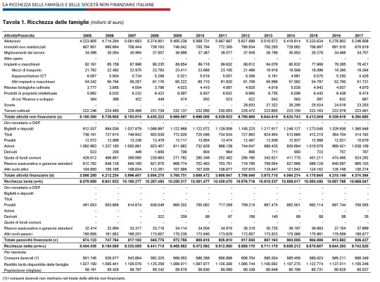 Dai dati Bankitalia, espressi a valori correnti, leggo che la ricchezza netta, quindi senza debiti, delle famiglie è passata dai 9.333 miliardi del 2007 ai 9.742 del 2017. E pure mettendoci dentro che la popolazione nello stesso tempo è aumentata di 864.683 anime, viene comunque fuori che la ricchezza (se quella si riferiva il nostro eroe) è aumentata da 156.543 pro capite a 161.067. Poco ma meglio di niente. Anzi: meglio di perdere ventimila euro.