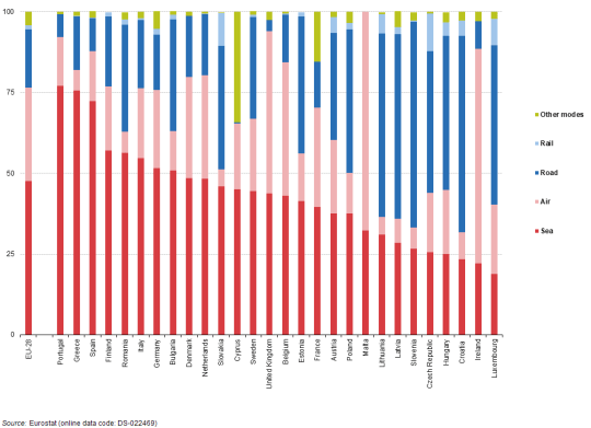 Questo grafico misura la percentuale di export extra Ue che passa per mare, quello sotto la percentuale di import.