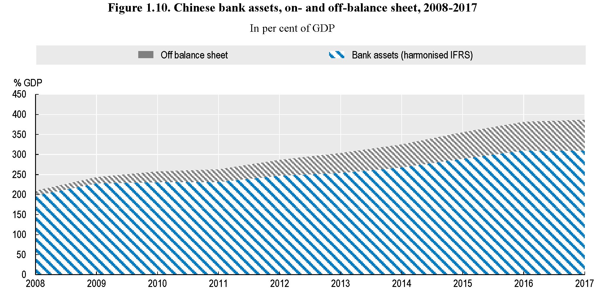 Ad aumentare la complicazione, il fatto che i partecipanti a questa giostra, SOE, veicoli WPMs, banche, hanno tutte dietro lo stato e ciò favorisce notevolmente il moral hazard, visto che gli investitori percepiscono che dietro ogni credito c’è la garanzia implicita del governo. E in effetti alcuni casi di cronaca rafforzano la percezione. Nel dicembre 2016 andò in default un bond della Sealand Security, un’azienda di brokeraggio posseduta da un governo locale. La Sealand vendette un bond nel mercato Dai Chi che ha finito col valere assai meno del prezzo concordato per il buy back. Il broker si ritirò dalla compravendita generando il panico e costringendo il regolatore a obbligare varie controparti anonime a mettere in piedi vari repo per coprire le perdite. Il risultato complessivo di questo moral hazard è che le attività fuori bilancio delle banche cinesi hanno superato, in relazione al peso nell’economia, il peso delle cartolarizzazioni che determinarono negli Usa la crisi del 2008. “La Cina sta provando con procedure macroprudenziali a gestire questi processi, ma sta sperimentando difficoltà”, dice Ocse.