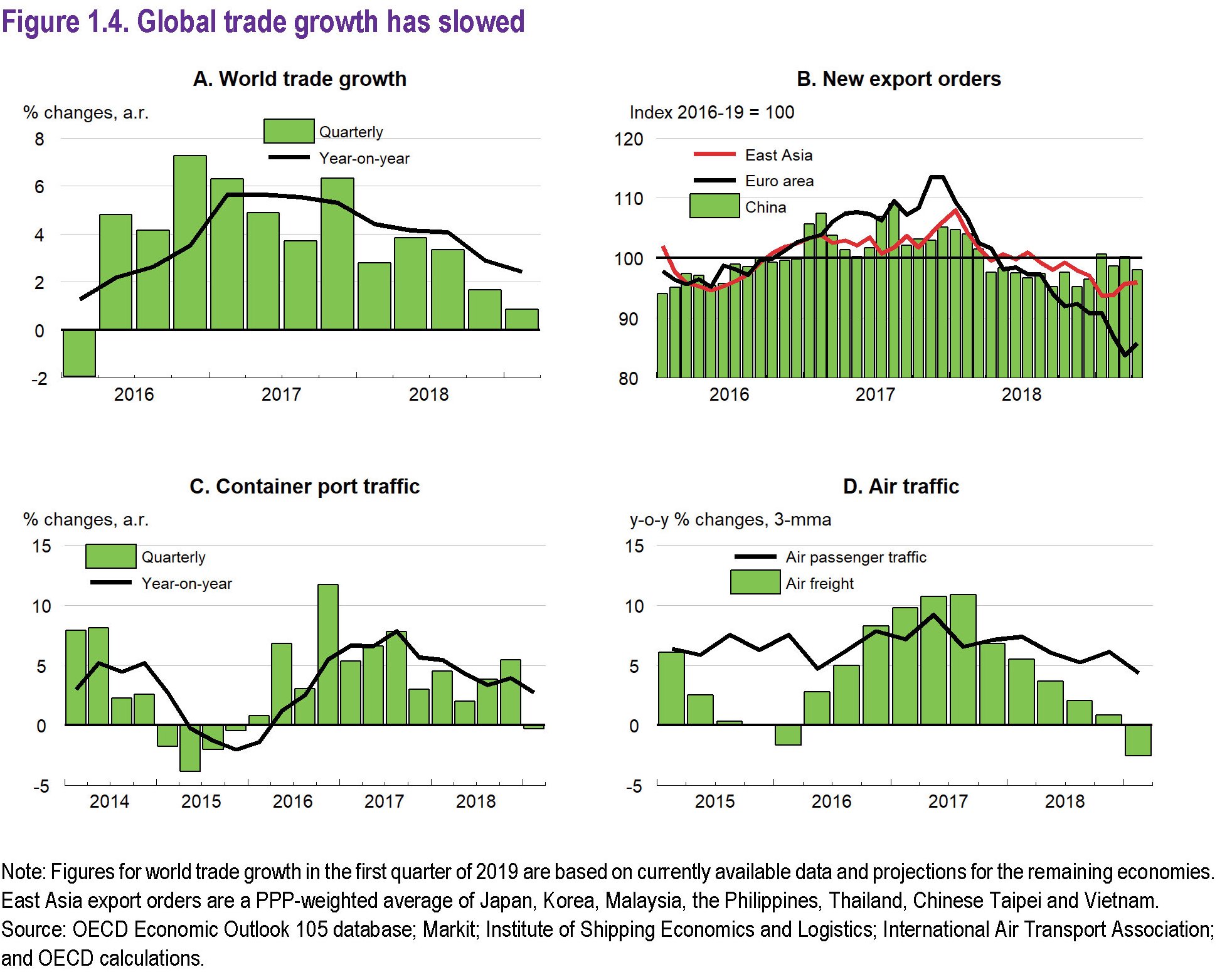 Chi abbia scorso anche frettolosamente l’ultimo outlook Ocse sulle condizioni dell’economia globale difficilmente avrà trovato di che rallegrarsi. Al contrario. La lunga analisi dell’organizzazione parigina sigilla col timbro della statistica l’andamento declinante della globalizzazione, che trova negli andamenti del commercio internazionale, e soprattutto degli investimenti ad esso sottesi, la sua cartina tornasole.