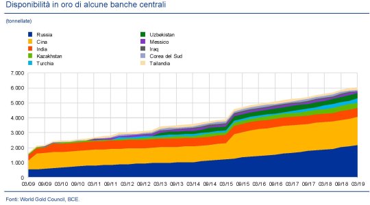 Ma il contributo delle banche centrali non si è limitato a questo. Da parte di alcune di loro, specie fra i paesi emergenti, si è osservato una propensione crescente all’acquisto di oro, in particolare da parte della banca centrale cinese e quella russa.