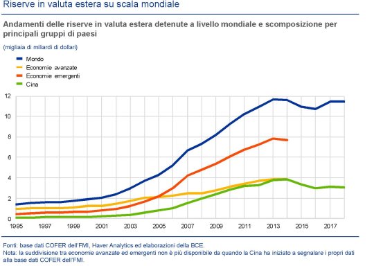 Alcune di queste le riepiloga un bell’articolo pubblicato sull’ultimo bollettino economico della Bce dedicato agli andamenti delle riserve in valuta estera delle banche centrali, che -casualmente? – crescono come i nostri debiti.