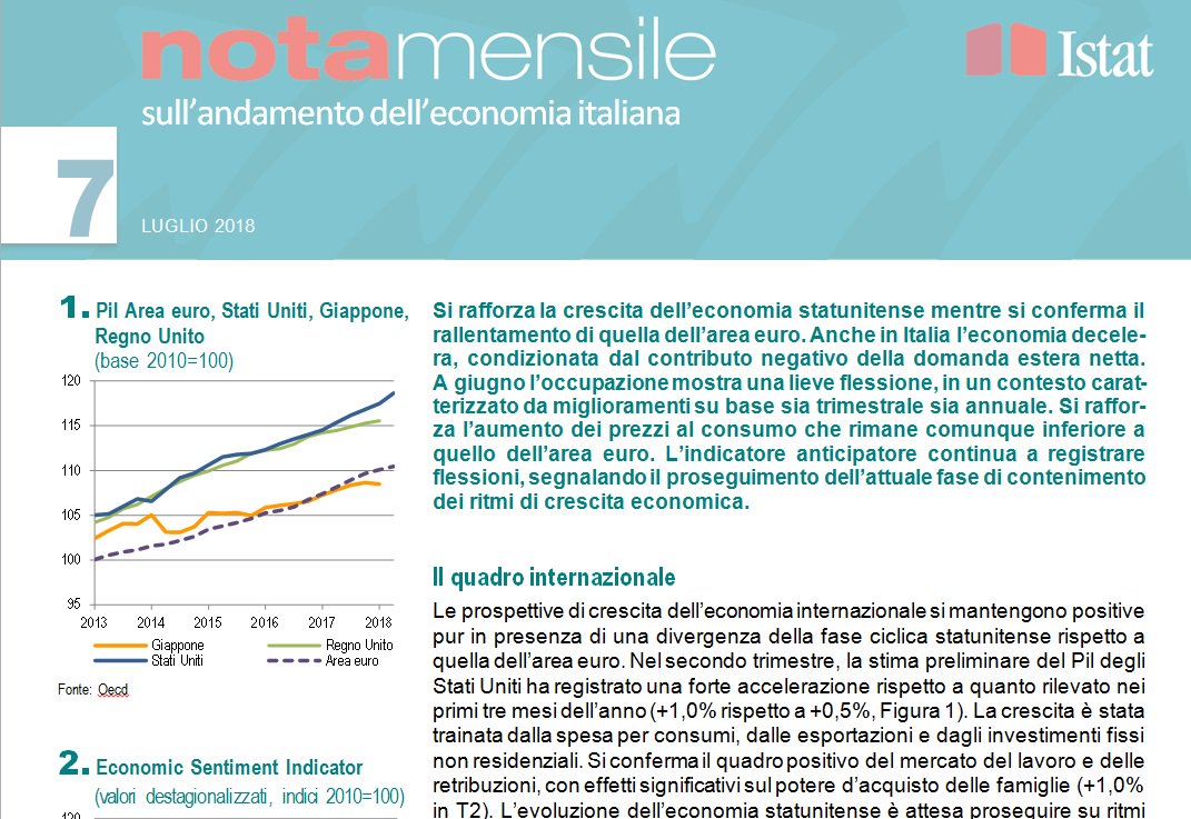 A parte il magico mondo parlamentare, impegnato nell’estenuante compito di trasformare in legge la Dignità, nelle stanze felpate e retro’ della burocrazia si respira un’aria sempre più rarefatta, mentre l’Istat nella sua nota mensile di luglio, certifica il prosieguo del rallentamento della crescita tirata già dall’andamento negativo dell’export netto.
