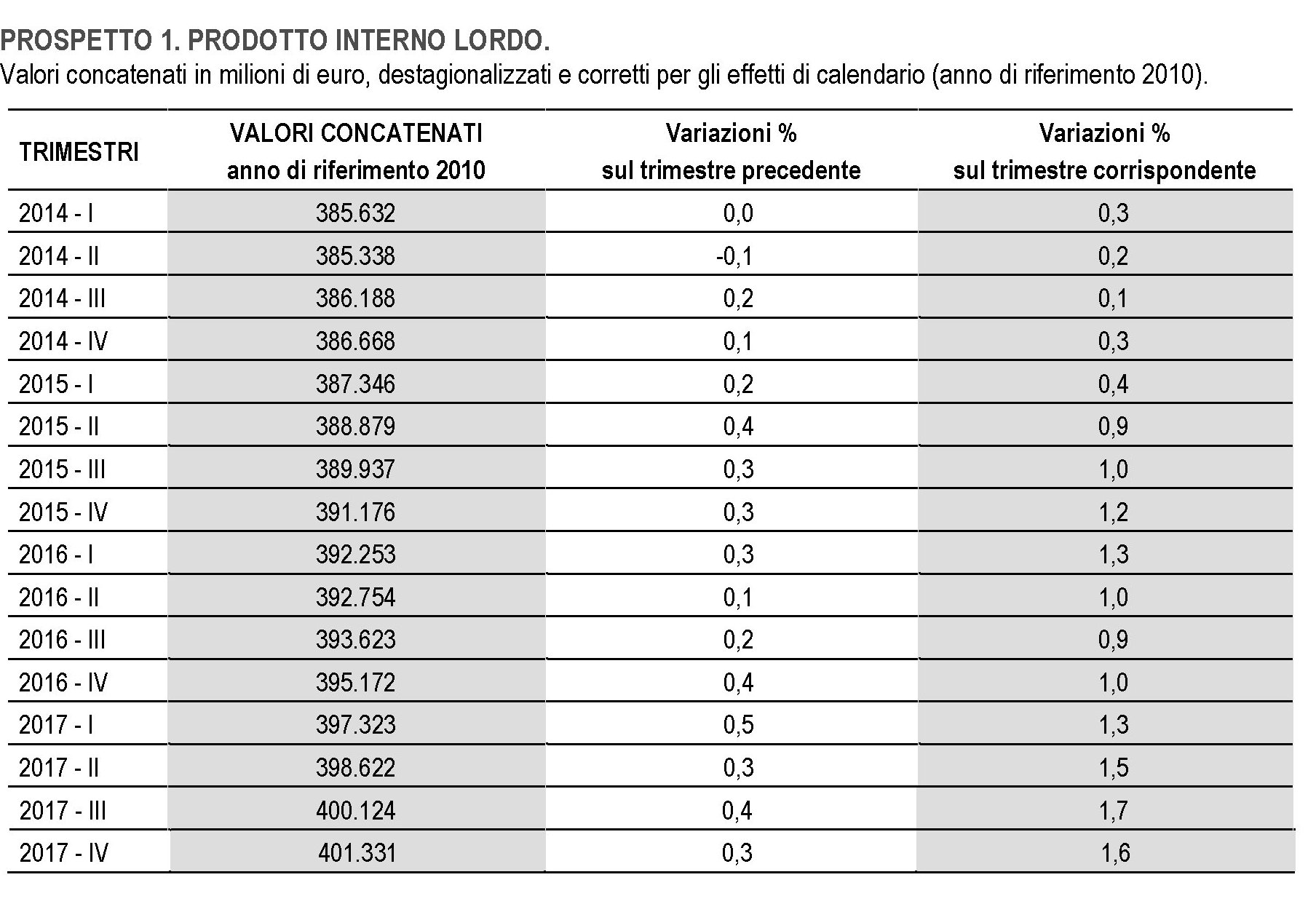 Dovendomi consolare noto soddisfatto che la nostra crescita è stata poca ma buona, perché ci stanno dentro sia la domanda interna che quella estera netta. E per giunta mamma Istat mi rassicura riportando che pure se adesso andassimo piatti per tutto l’anno, comunque chiuderemmo il 2018 con un +0,5%.