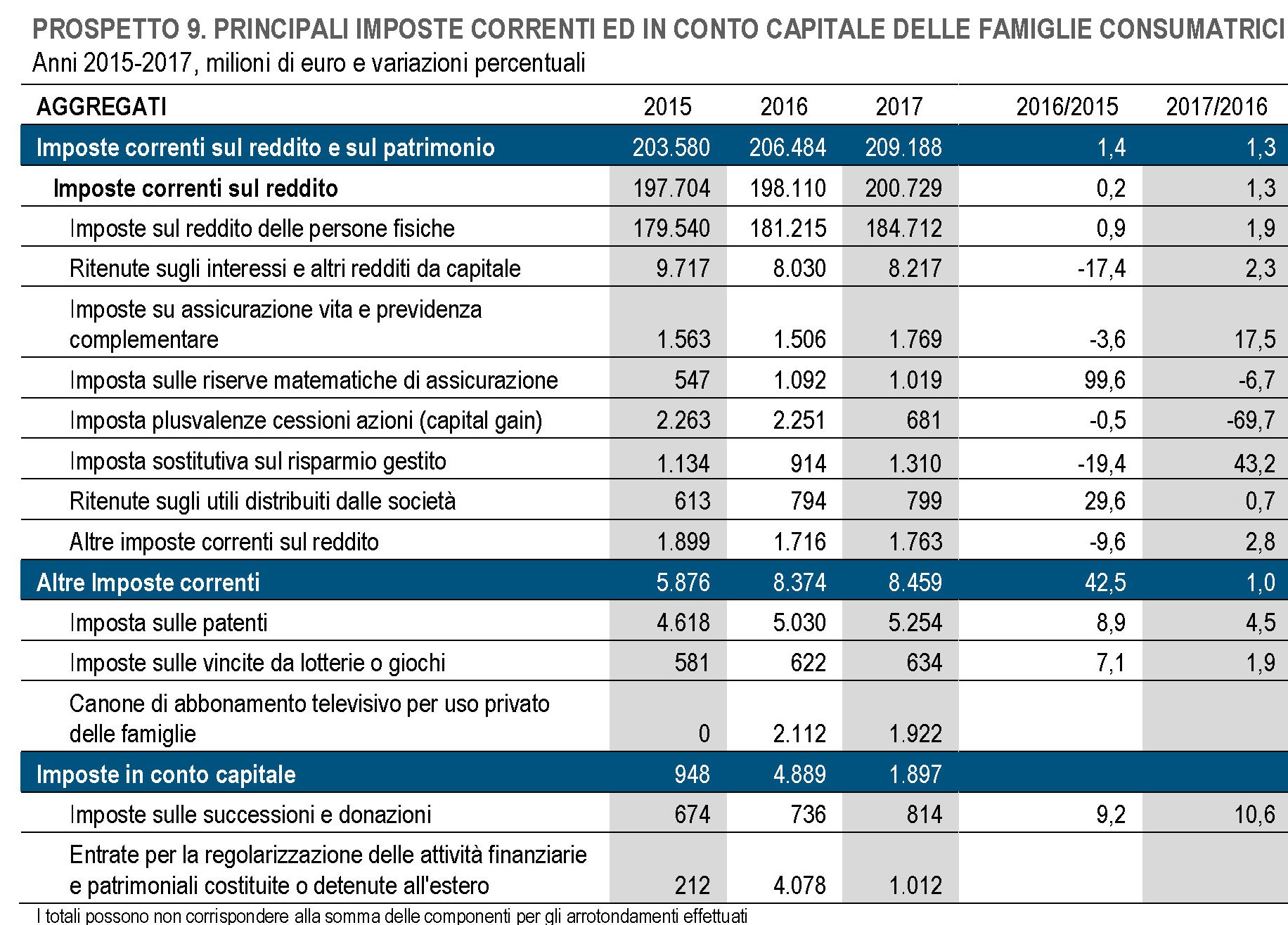 Prima di congedarmi dall’Istat, che ormai mi ha consolato abbastanza, vi do giusto un paio di elementi da digerire nel corso del fine settimana. Il primo è che nel 2017 c’è stata una robusta crescita delle prestazioni sociali ricevute dalle famiglie, aumentate dell’1,7% e, nel dettaglio , un +1,1% di pensioni e rendite. E poi ci sono le imposte di cui è meglio non parlare, ma che è bello far vedere.