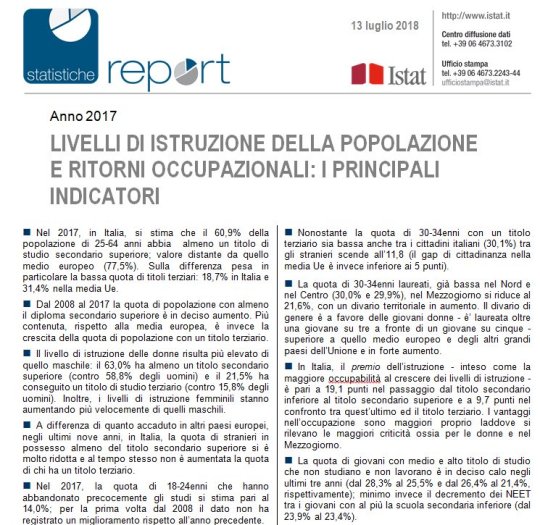 Non ho scelto a caso la scuola. Istat infatti ha pubblicato oggi una release imperdibile sullo stato della nostra istruzione.