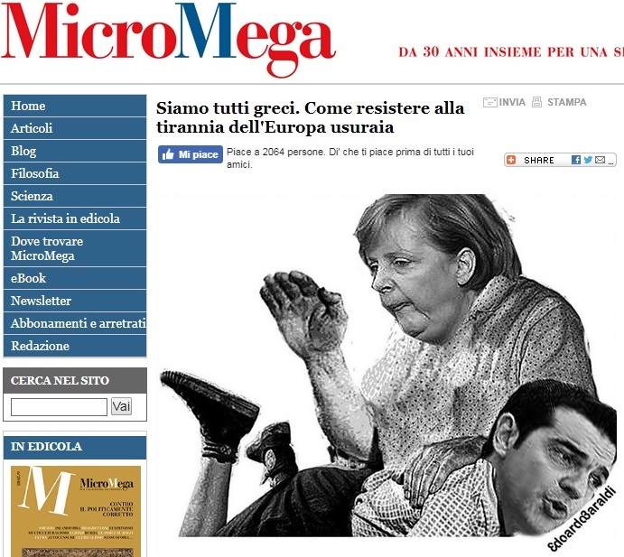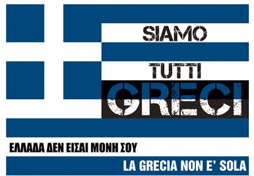 Che, non ve lo ricordate il 2015? Certo che sì. Giravano capolavori come questo qua sotto da parte della nostra migliore popolazione a sostegno della povera Grecia, vessata dall’Europa tiranna e dal capitalismo internazionale.