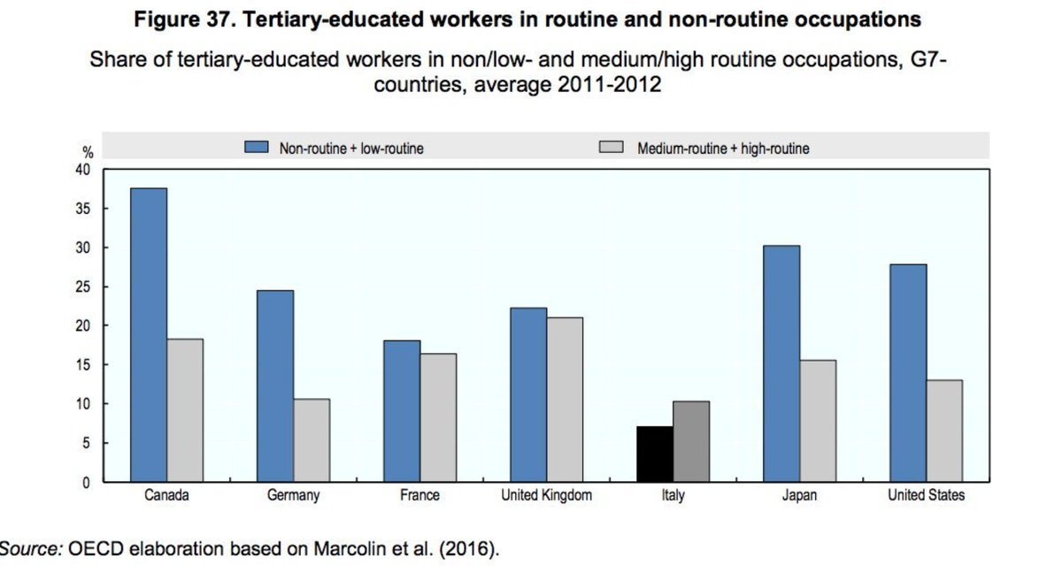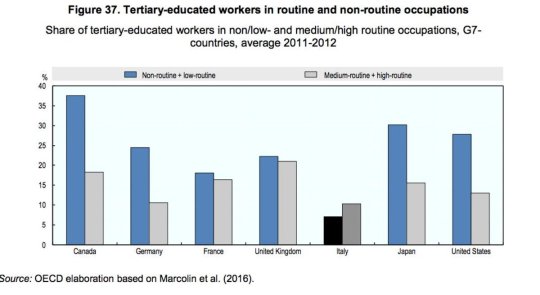 con la conseguenza che siamo il paese più esposto alla concorrenza dei robot per il lavoro, visto che abbiamo un sacco persone low skilled adatte solo a lavori routinari,