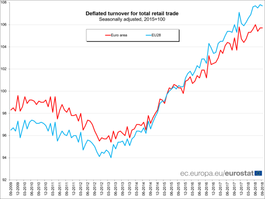 Notate la finezza. Prima le buone nuove e poi le cattive. Tanto lo sanno tutti che si e no uno su cento legge oltre al terza riga. Chiamarle buone nuove, poi, è un po’ esagerato. A parte che il tendenziale sul trimestre luglio-settembre è negativo, è negativo pure il congiunturale mensile (-0,8% in valore e -0,7% in volume), quindi le vendite rispetto al mese precedente, sia il tendenziale annuo (-2,5% in valore e -2,8% in volume), ossia le vendite rispetto a settembre 2017.