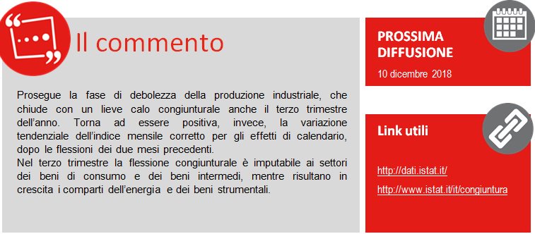 Lo so, è incredibile, ma bisogna sapere unire i fili. Stiamo qua apposta. Ve la faccio breve. Sapete già che qualche giorno fa abbiamo fatto uno bello zero di crescita, che peraltro poco dopo è stato arricchito (si fa per dire), da un robusto calo delle vendite al dettaglio e oggi dal terzo calo consecutivo della produzione industriale trimestrale…