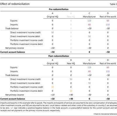 L’azienda del paese A ha tessuto relazioni economiche con i paesi B e C. In particolare ha deciso di domiciliare la sua sede nel paese B. Ciò non produce alcuna attività economica reale nel paese B, ma legale sì. E la conseguenza si vede nella tabella. Mentre prima della nuova domiciliazione il paese A incassa tutto il reddito dell’investimento estero, dopo il reddito per il paese A si riduce a un quinto, mentre i quattro quinti rimangono nel paese dove è stata domiciliata la società, malgrado non abbia prodotto nulla. Ciò dipende dalle regole con le quali vengono contabilizzati gli investimenti diretti e quelli di portafoglio e questo “distorce la misura del reddito nazionale lordo (GNI) e del conto corrente”. Tale effetto è conseguenza del fatto che gli azionisti dell’azienda che lavora nei tre paesi continuano a risiedere nel paese A, ma quello che prima era un credito che derivava da un investimento diretto del paese A verso il paese adesso diventa un investimento di portafoglio di A verso B e quindi i flussi di reddito fra i due paesi sono limitati al pagamento dei dividendi. “Questo riduce il saldo di conto corrente per il paese A perché alcuni profitti sono trattenuti e vanno ad alimentare gli utili non distribuiti”. Al contrario accade per il paese B che riceve tutto il frutto degli investimenti di A derivanti da C e restituisce solo la quota di dividendi ad A e perciò “gonfia” di attivi, che di fatto non sono suoi, il conto corrente del paese. Evidenze di questo tipo sono state osservate, ad esempio, in Svizzera, dove i robusti attivi correnti dipendono in buona parte proprio dalla presenza di multinazionali estere. Ma tale meccanismo è ancor più visibile in Irlanda. Nel decennio scorso diverse aziende britanniche e statunitensi hanno spostato il domicilio aziendale laggiù determinando un notevole incremento alla voce centrate da redditi di capitale per il paese che a sua volta ha guidato l’incremento dei redditi primari e quindi del conto corrente.