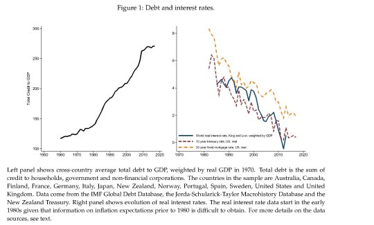 Il ragionamento degli autori è molto semplice. L’aumento dell’indebitamento di famiglie e governi non solo finisce col diminuire la domanda aggregata – squisito paradosso per i sostenitori del deficit spending – ma affossa anche i tassi di interesse.