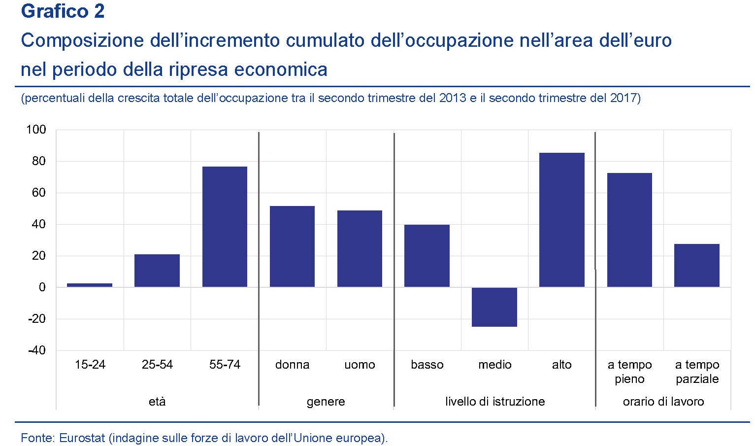 La crescita dell’occupazione di donne e anziani nell’EZ. L’ultimo bollettino economico della Bce ha sottolineato il notevole contributo dato alla crescita dell’occupazione nell’area nella fase della ripresa economica dall’aumentata offerta di lavoro da parte di donne e persone in età avanzata, oltre ai flussi migratori. A conclusione dell’osservazione gli economisti della Bce deducono che nel medio lungo termine l’offerta di lavoro diminuirà in corrispondenza dell’invecchiamento della popolazione per questo sarebbero necessarie politiche volte a sostenere la forza lavoro e la crescita dell’occupazione, ad esempio attraverso l’assistenza ai disoccupati di lunga durata, dei migranti e di altre categorie che si connotano per i bassi tassi di partecipazione. E’ interessante sottolineare, tuttavia, che all’aumentata offerta di occupazione registrata in questi ultimi anni ha contribuito significativamente anche l’aumento dell’età pensionabile.
