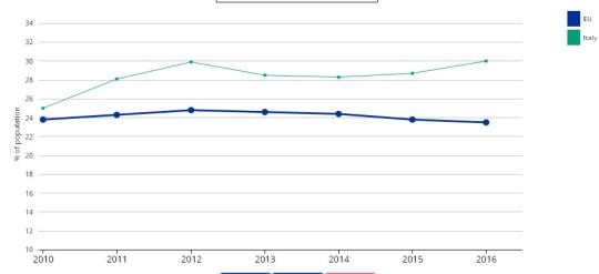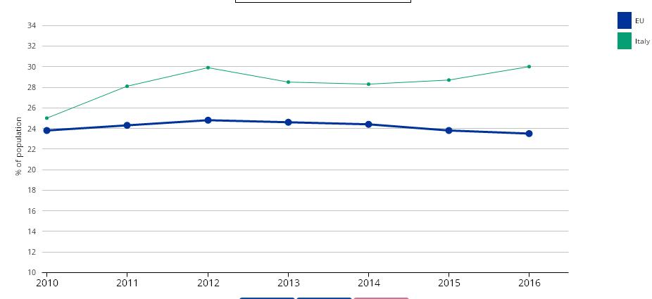 La prima curva mostra l’incremento della ricchezza reale nell’Ue a confronto con quella italiana, rigorosamente al di sotto. La seconda curva mostra l’aumento della povertà nell’Ue a confronto con quella italiana, regolarmente al di sopra. Dite che c’è da preoccuparsi? Ma no, basta mangiare sushi.