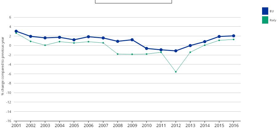 Sicché il nostro Donald T., dopo aver amoreggiato con i cinesi a Pechino in nome dell’interesse europeo, oggi ha fatto la stessa cosa col primo ministro giapponese e ha firmato un trattato di libero scambio che nelle parole del compagno di merende di Donald T., il claudicante (per sciatica) Juncker “proteggerà dal protezionismo”, che deve essere la traduzione brussellina del famoso detto anonimo “i dazi liberano dal liberalismo”. Non faccio in tempo a farmi folgorare dalla rivelazione che Eurostat se ne esce con una delle sue note che mi riporta d’improvviso al discorso iniziale: l’andamento della ricchezza reale nell’eurozona, e in particolare a casa nostra. Fatevi due risate (per dire).